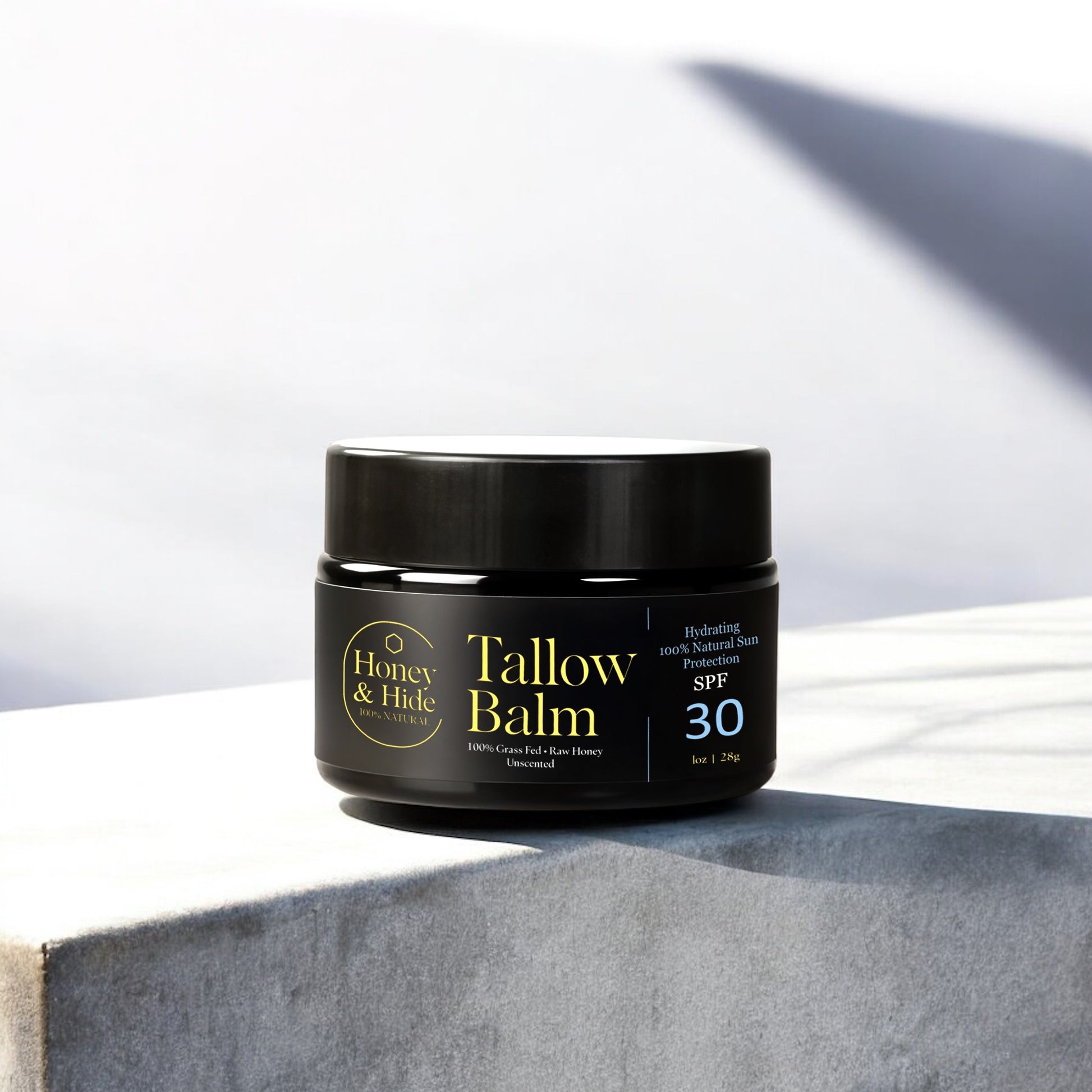 Our ultra-rich Tallow Balm is a skin-repairing powerhouse made with just four ingredients—and zero nonsense. We blend 100% grass-fed beef tallow for deep, bioavailable nourishment, raw unfiltered honey to hydrate and heal, cold-pressed sweet almond oil to soften and smooth, and zinc for its natural SPF 30 sun protection and soothing, anti-inflammatory benefits.